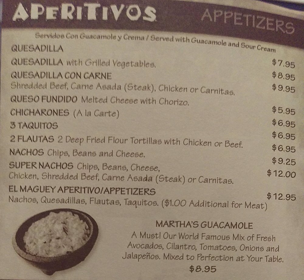 Nachos, quesadillas, flautas, taquitos. Add meat for an additional charge.