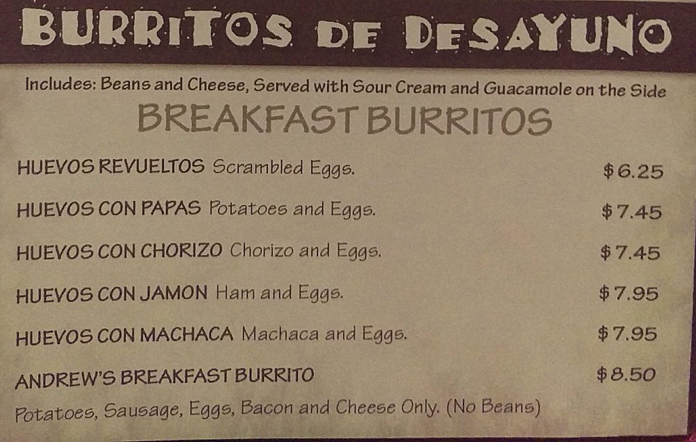 Potatoes, sausage, eggs, bacon and cheese only. No beans.