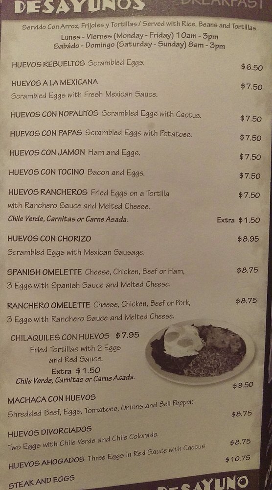 Fried eggs on a tortilla with ranchero sauce and melted cheese. Extra chile verde, carnitas and carne asada for an additional charge.